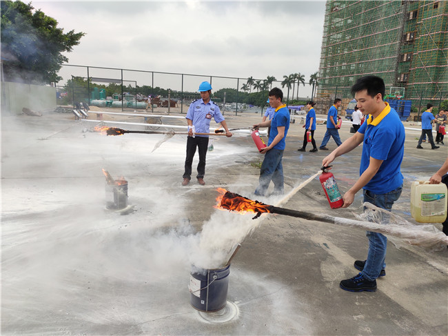 此次培訓(xùn)對象為2018年11月以后新入職的員工、公司消防隊(duì)員、重點(diǎn)消防部門玻璃鋼部分人員及油漆班員工,共76人。培訓(xùn)內(nèi)容分為消防理論知識講解、明火實(shí)操培訓(xùn)、模擬火災(zāi)現(xiàn)場消防演習(xí)、培訓(xùn)總結(jié)四個部分,全過程由人力資源中心保安隊(duì)隊(duì)長組織并指揮,安委會安全主任全程監(jiān)督協(xié)助。