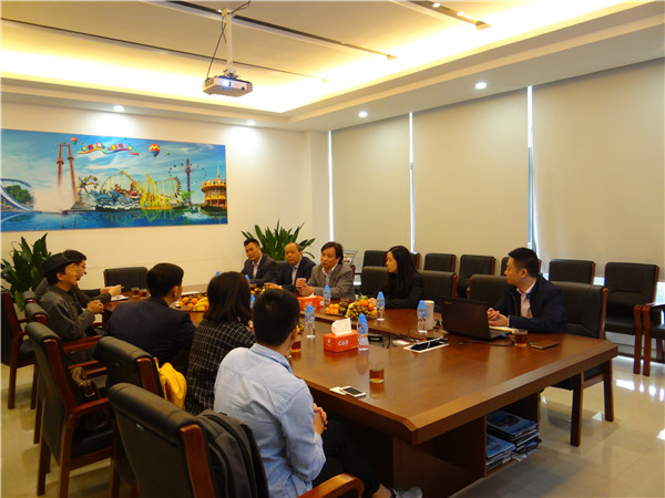 隨后,眾人落座會議室。會談中,劉喜旺總經(jīng)理向到場領(lǐng)導(dǎo)演示了公司最新產(chǎn)品宣傳片,加以一一解讀剖析各產(chǎn)品的創(chuàng)新設(shè)計(jì)理念及安全運(yùn)轉(zhuǎn)形式,并對公司技術(shù)創(chuàng)新實(shí)力、主要技術(shù)成果及在產(chǎn)品研發(fā)方面取得的成就進(jìn)行了介紹,一番言論頻獲在座領(lǐng)導(dǎo)們的點(diǎn)頭應(yīng)和。在了解了公司管理和技術(shù)的不斷創(chuàng)新后,眾人對金馬目前的發(fā)展?fàn)顩r表示高度認(rèn)可,也對公司的持續(xù)創(chuàng)新發(fā)展提出了寶貴意見。黃書記贊道“金馬現(xiàn)已不再僅是城市設(shè)備的制造供應(yīng)商,更不斷努力成為產(chǎn)品理念設(shè)計(jì)與創(chuàng)意研發(fā)的行業(yè)引領(lǐng)者,這份榮譽(yù),金馬當(dāng)之無愧”。鄭院長也表示,“很高興看到今日的金馬已從制造走向創(chuàng)造,從中山窗口走向中國窗口,更不斷走向世界窗口,我們今后的合作已有了良好的基礎(chǔ)條件”。最后,眾人就未來游戲游藝行業(yè)發(fā)展?fàn)顩r與前景進(jìn)行了全面深入的交流互動,會議氣氛熱烈友好。