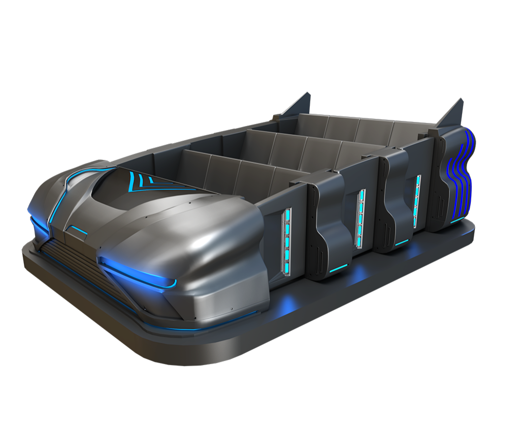 車(chē)體設(shè)計(jì)上,車(chē)輛結(jié)構(gòu)輕巧、緊湊(承載人數(shù)12人/車(chē)),行走軌跡可隨意設(shè)定,且轉(zhuǎn)彎半徑小,可實(shí)現(xiàn)直角轉(zhuǎn)彎;車(chē)輛外觀富有科技感的配色及戰(zhàn)船造型,搭配炫彩的科技藍(lán)燈帶,貼合項(xiàng)目主題,營(yíng)造滿滿的沉浸式科技氛圍。