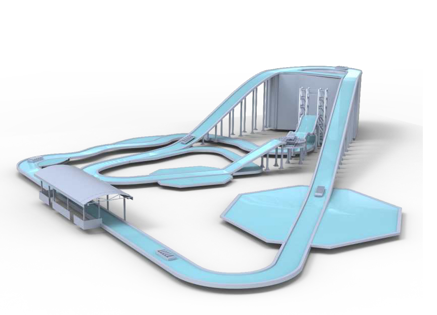 垂直提升激流勇進(jìn)設(shè)備提升高度20米,具備垂直提升、跌落、背沖的特點(diǎn)。采用垂直傳動系統(tǒng)提升方式提升,減少設(shè)備占地面積。船體到達(dá)旋轉(zhuǎn)臺時進(jìn)行方向調(diào)整,乘客可在游玩過程中分別體驗(yàn)前向俯沖起伏、背向俯沖起伏兩種運(yùn)動形式,同時可融入影視特效主題內(nèi)容,體驗(yàn)元素多樣,驚險刺激。