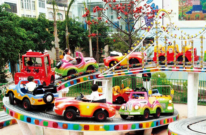 小朋友們開著自己心愛的小車輛翻山越嶺、追逐嬉戲;配有歡快優(yōu)美的音樂,氣氛輕松。小車沿軌道自動轉向,盤旋在綿延起伏的立交軌道上,時高時低,你追人趕,令孩子們體會翻山越嶺和飛越時空的感覺,夠刺激而絕無恐慌之感。