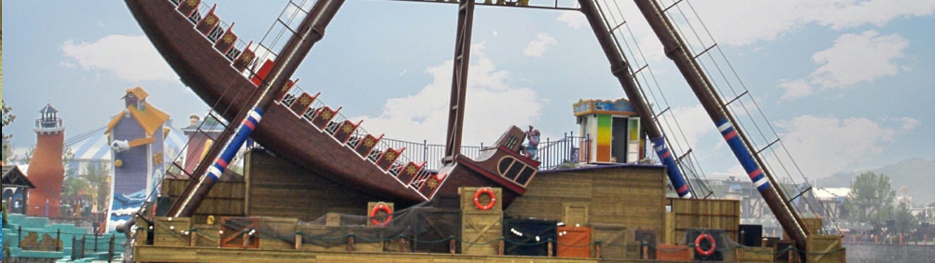 海盜船繞水平軸來回擺動,模擬海盜乘風出海的場景,交替而至的失重和超重感讓乘客盡情體驗搖擺的樂趣。16排座椅,承載96人。