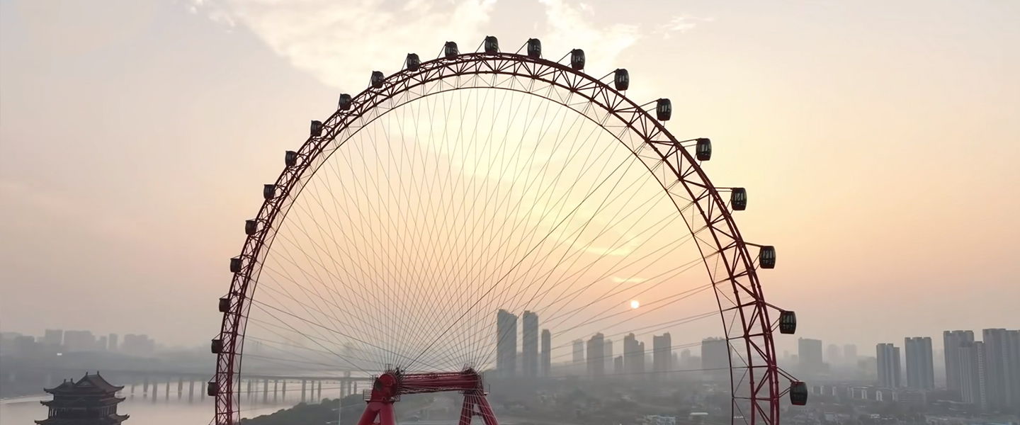 128?觀覽?,乘客從站臺(tái)乘座艙徐徐升起,升到?空,環(huán)繞?圈后?回到站臺(tái),獨(dú)特的運(yùn)動(dòng)?式,提供了獨(dú)特的空間體驗(yàn),再配以明麗變幻、動(dòng)感迷?的燈飾,讓乘客充分體會(huì)在?地和?空中循環(huán)往復(fù)的同時(shí),遠(yuǎn)眺美景。